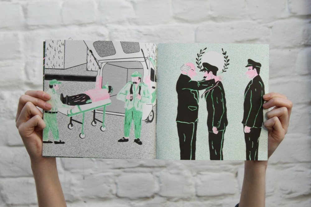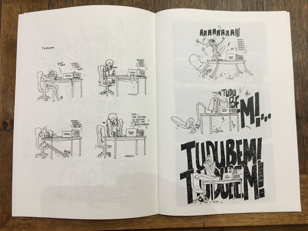 Pour inaugurer l'ouverture officielle du TONER, nous avons invité nos premiers résidents - les auteurs Valério Bindi et Bambi Kramer - à utiliser nos machines pour la première fois afin de confectionner un livre collectif sur base d’un appel à contributions et de moments de dessin sur place.