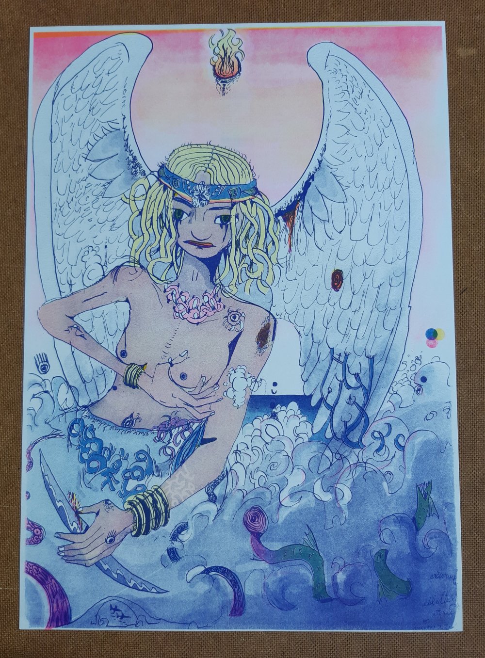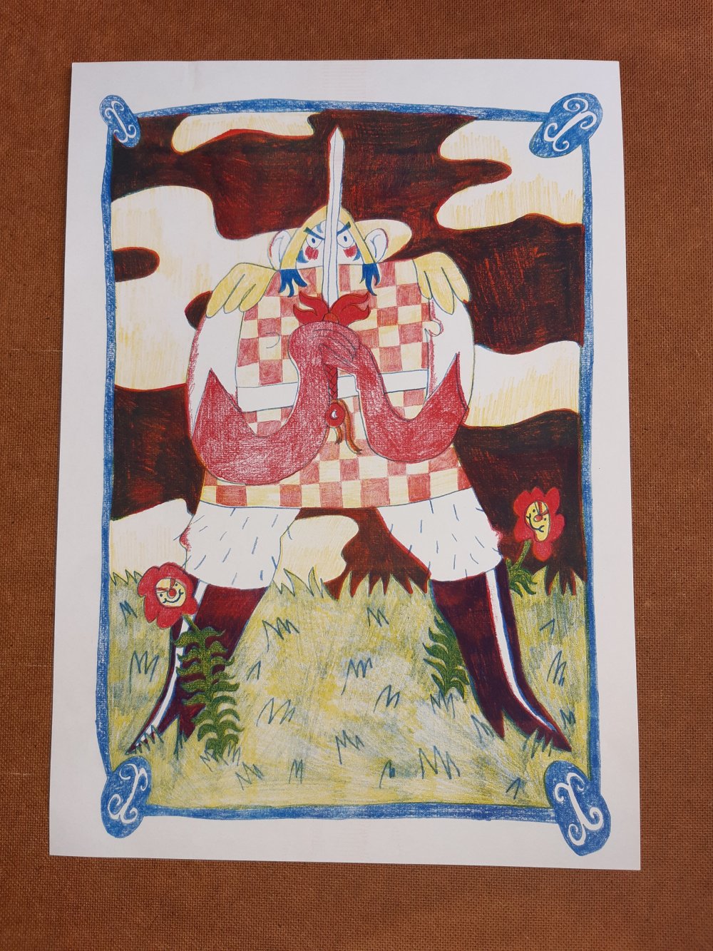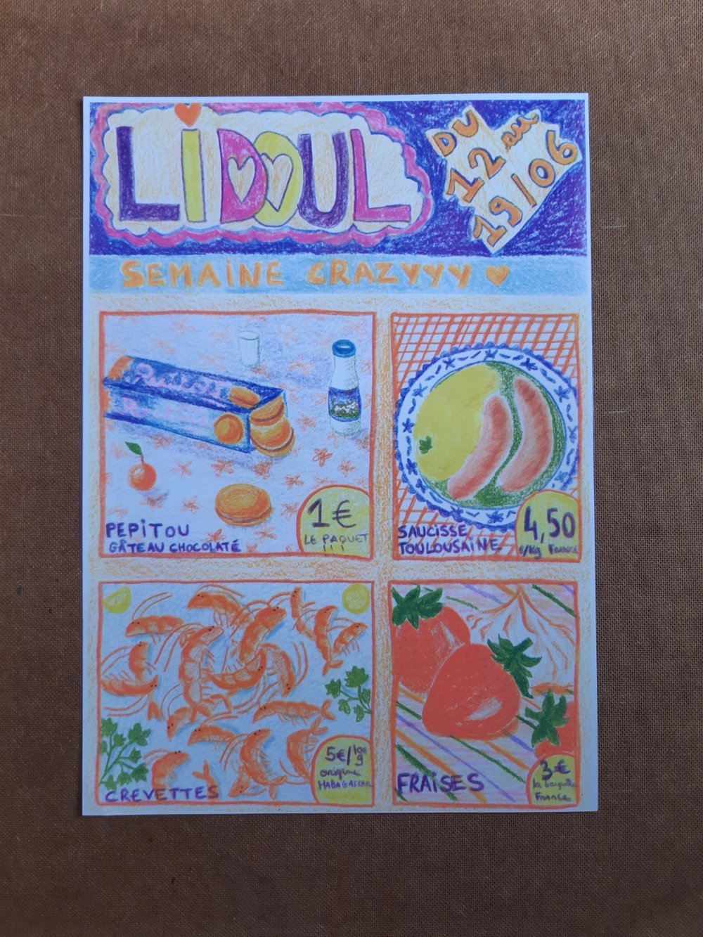 Dessin A4 au crayon de couleur imprimé sur papier couché à la laser