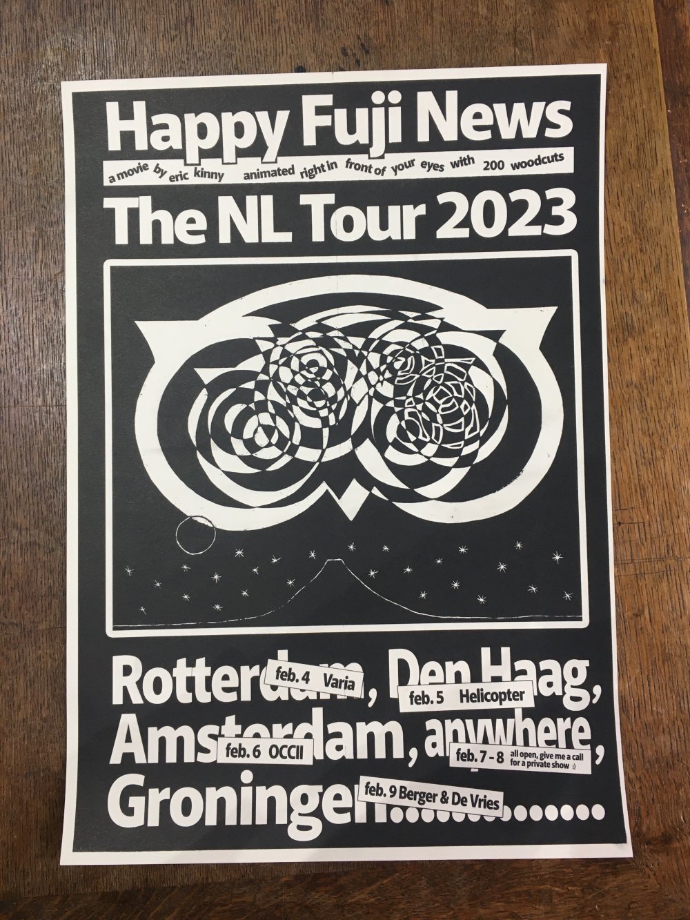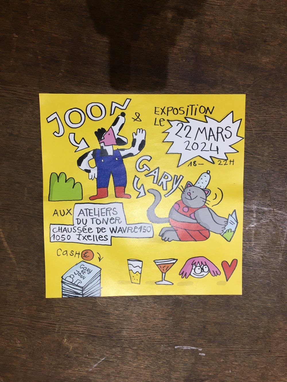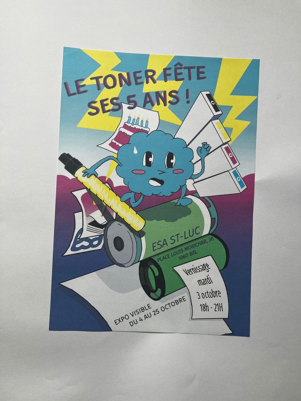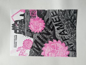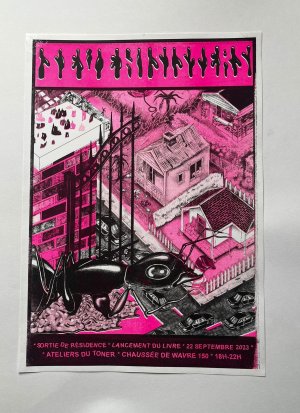 Affiche dessinée par Eléasr (12 ans) imprimée aux Atelier du toner par Antoine Erre en compagnie de son cousin, à l'occasion de sa visite à Bruxelles.