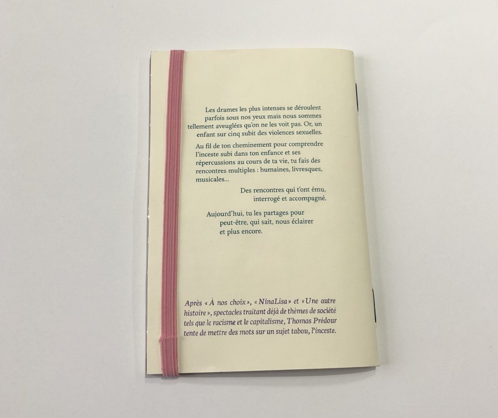 "Les drames les plus intenses se déroulent parfois sous nos yeux mais nous sommes tellement aveuglé.es qu'on ne les voit pas. Or, un enfant sur cinq subit des violences sexuelles." Un texte pièce de théâtre sur l'inceste.