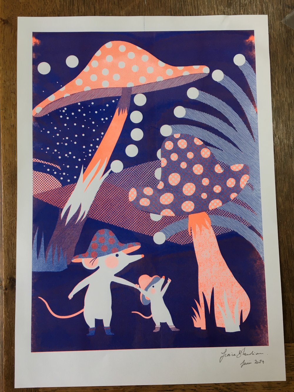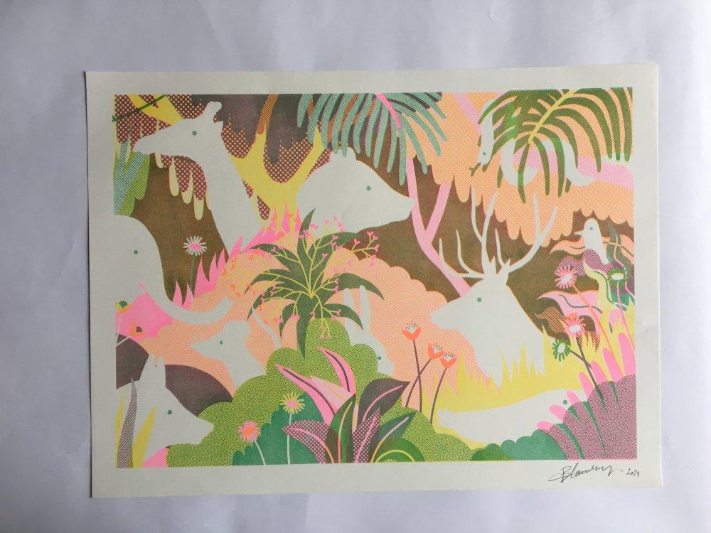 Affiche riso A3 / 4 couleurs + ajout paillette