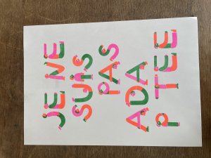 Réédition augmentée (lire modifiée) de l'édition originale de 2001, qui elle était imprimée en sérigraphie. Fanzine de 16 pages format A5 en (riso) 2 couleurs. Dessins accompagnés de textes composés avec des mots découpés dans des magazines.