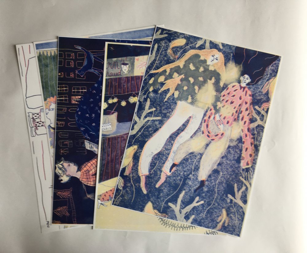 Dessins originaux à l'aquarelle et couverture sérigraphiée.